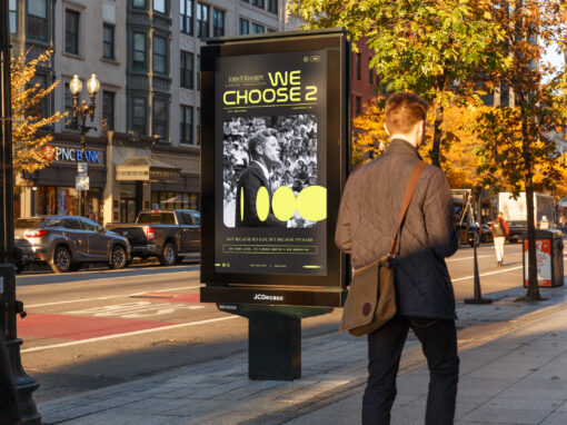 I was also asked to take photos of the out-of-home digital signage created to promote the campaign. The goal was to capture the signs with dramatic golden-hour lighting. I scouted the locations on foot and used an AR sun-tracking app to plan my shots. The weather cooperated and I got some beautiful images at sunrise in Kenmore Square and sunset on Boylston Street.